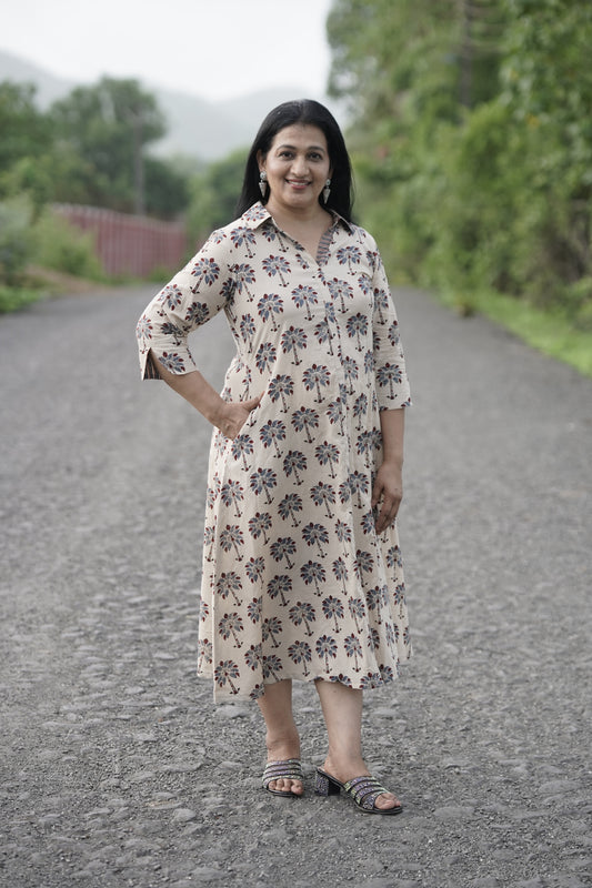 Ajrakh shirt collar dress