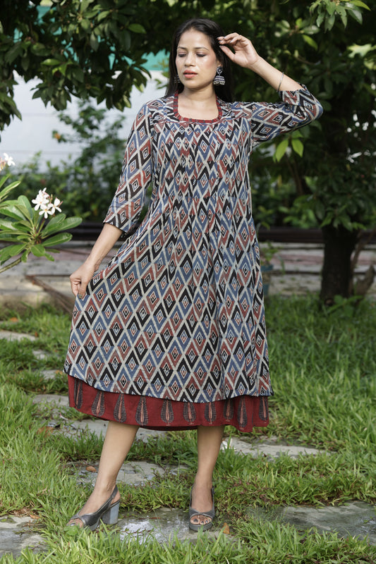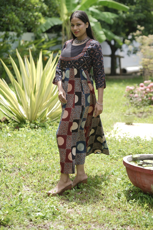 Ajrakh kali dress