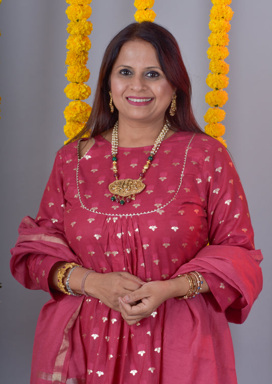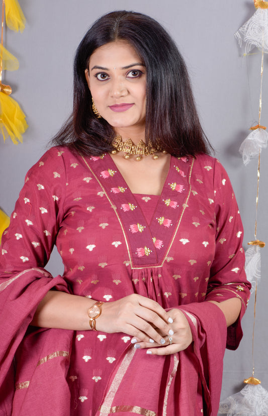 Banarasi Jari Butta Kurta Pant dupatta- Pink mulberry