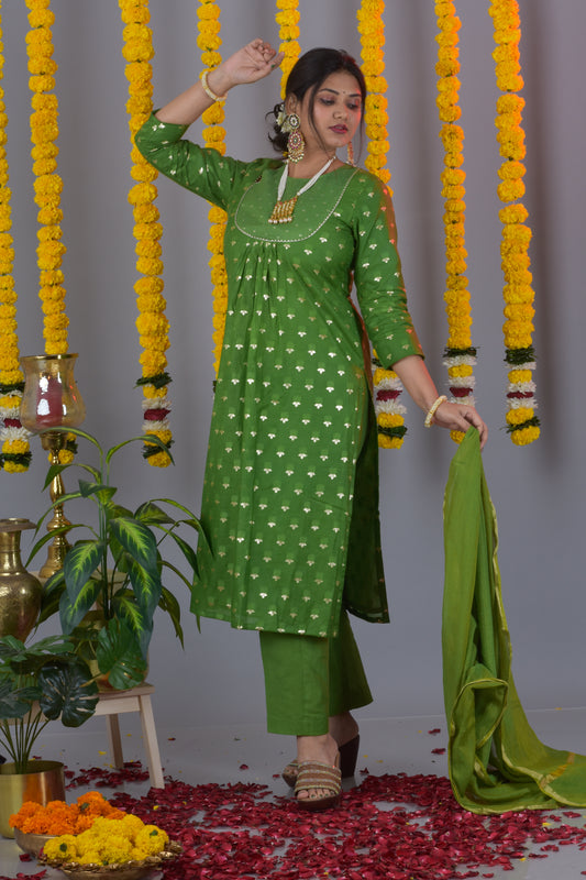 Banarasi Jari Butta Kurta Pant dupatta- Green