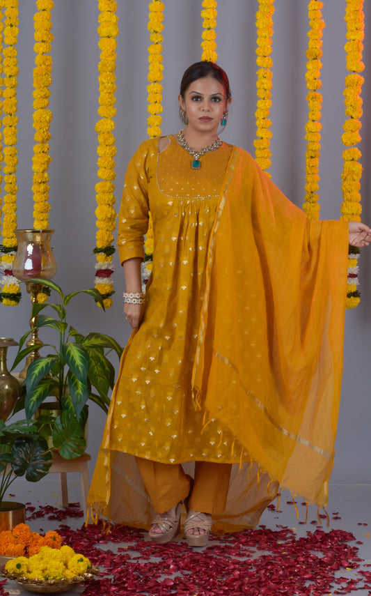 Banarasi Jari Butta Kurta Pant Dupatta- Mustard Yellow