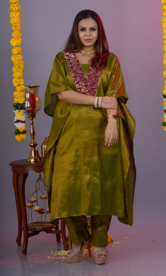 Tara Butti Kurta Pant Dupatta - Mustard yellow