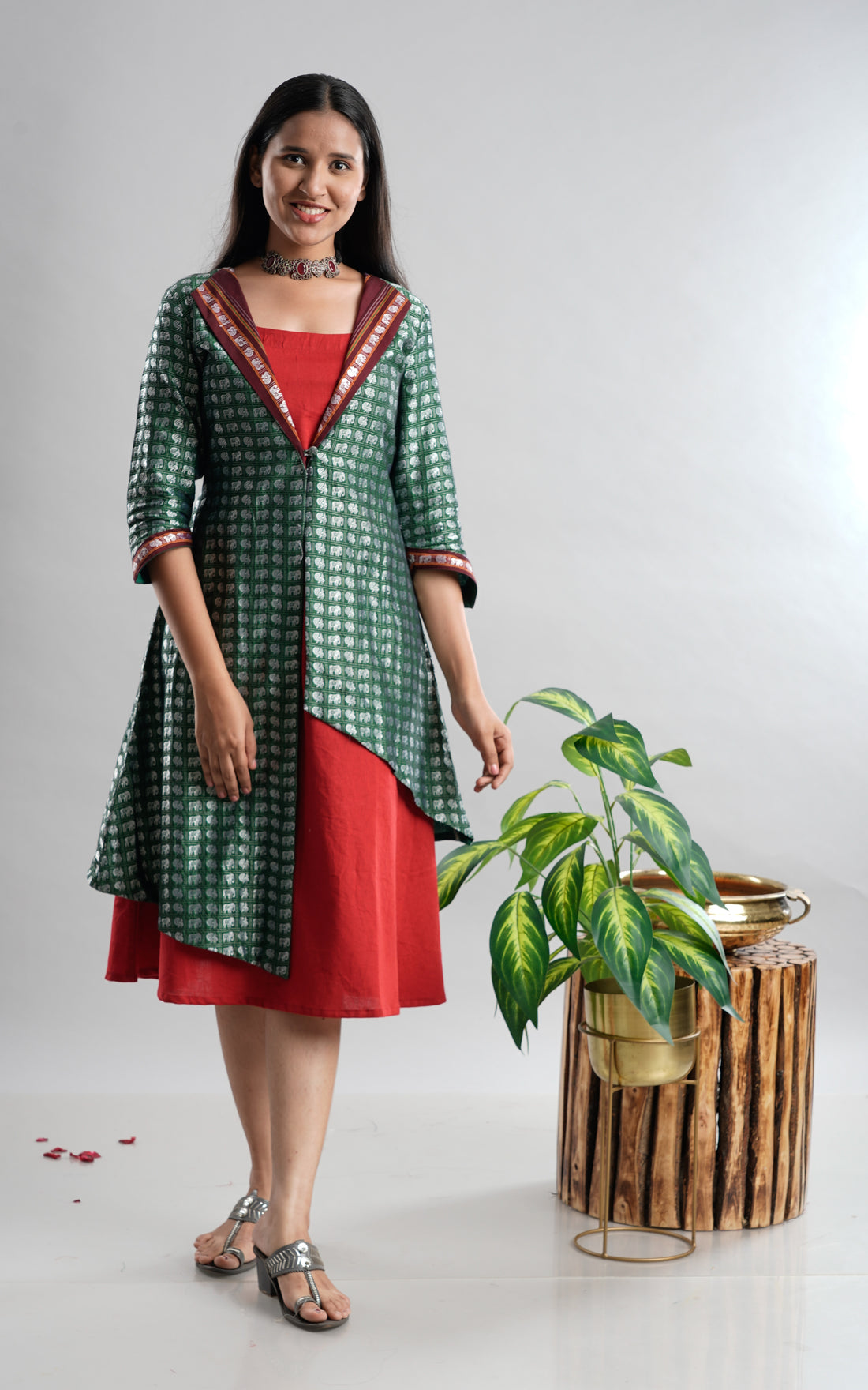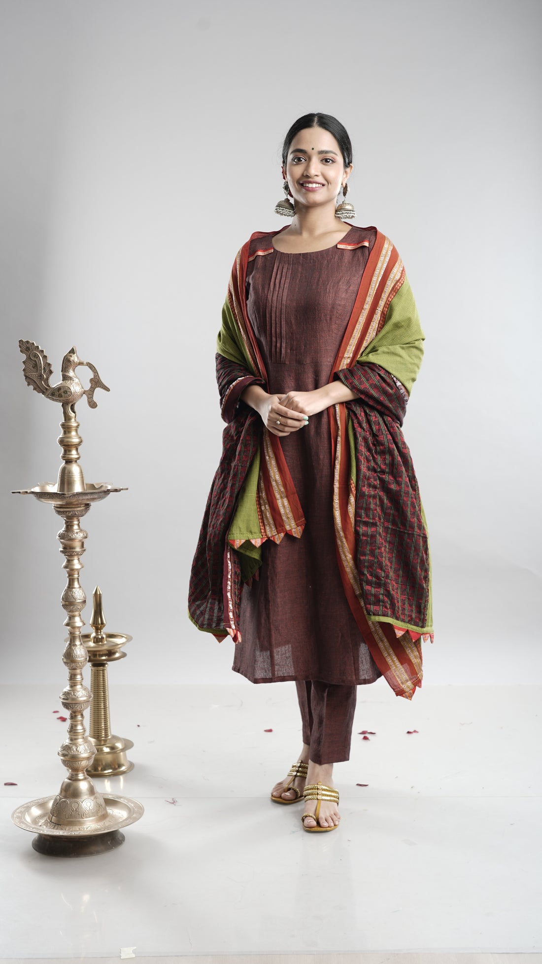 Step into timeless elegance with our rust red kurta set, crafted from authentic Indian handloom...