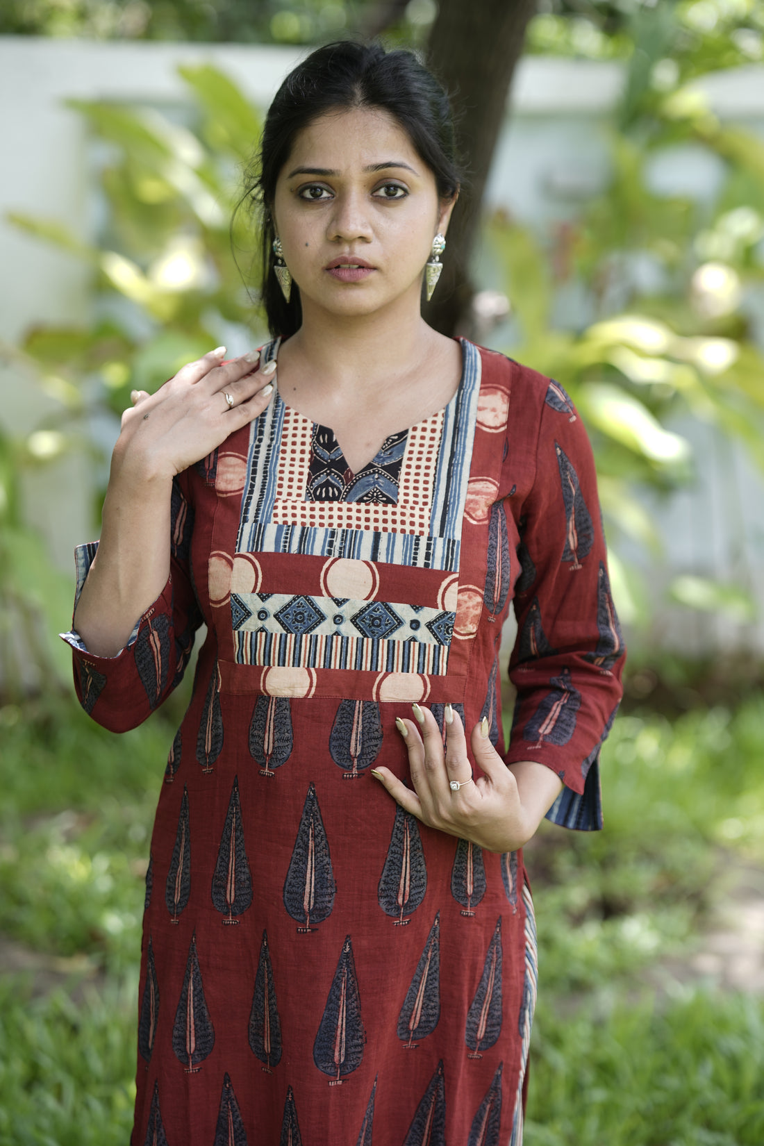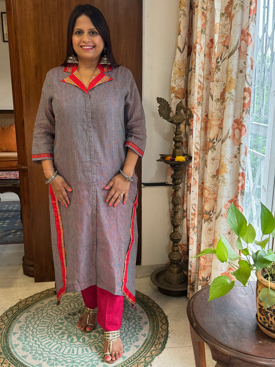 Step into timeless elegance with our rust red kurta set, crafted from authentic Indian handloom...