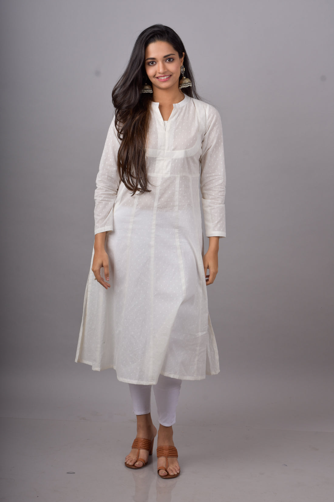 Mulmul Cotton Kali Kurta- White