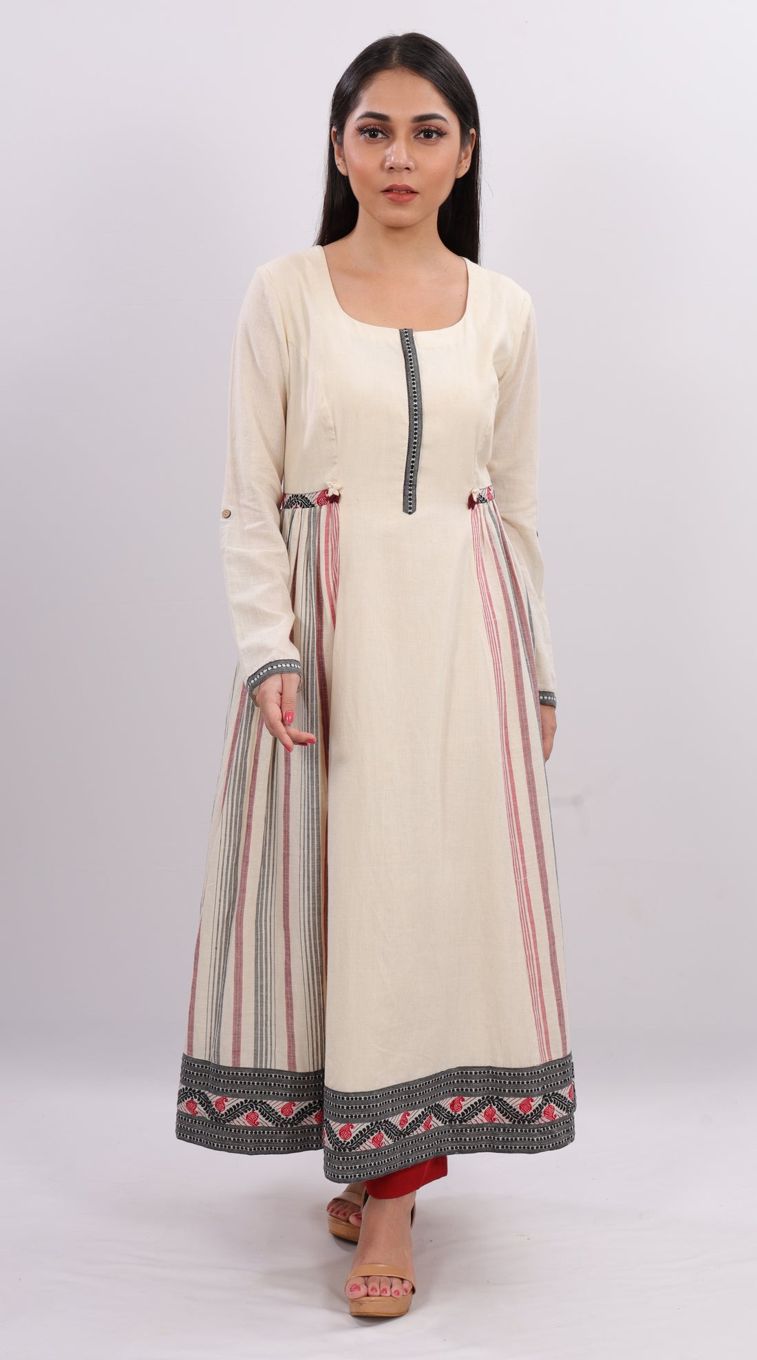Princess Cut Flared Kurta with Pallu details on the side. Fabric- Handloom cotton Length -48"...
