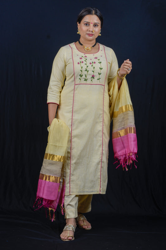 Banarasi Jari Butta Kurta Pant Dupatta- Mustard Yellow