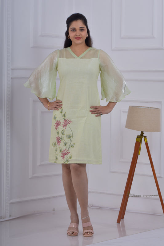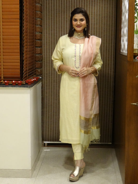 Challa Wala Embroidered Kurta Pant Set- Lime