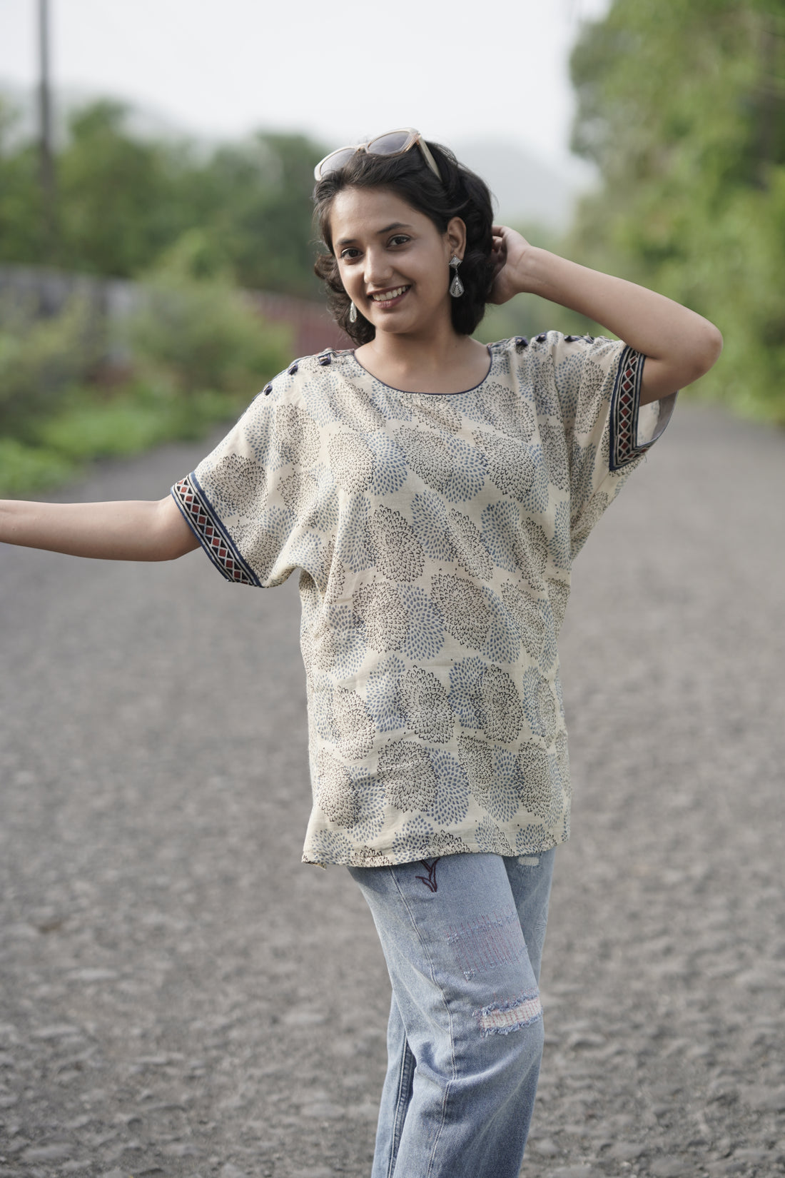 Step into comfort and effortless style with this elegant casual printed cotton top. Crafted from...