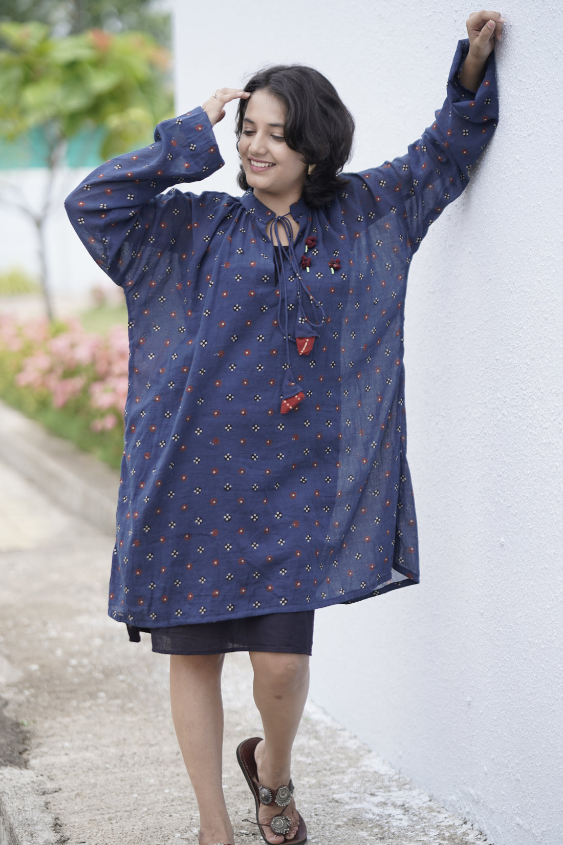 Ajrakh mulmul pintex dress it crafted in pure mulmul fabric with naturally dyed handblock prints,...
