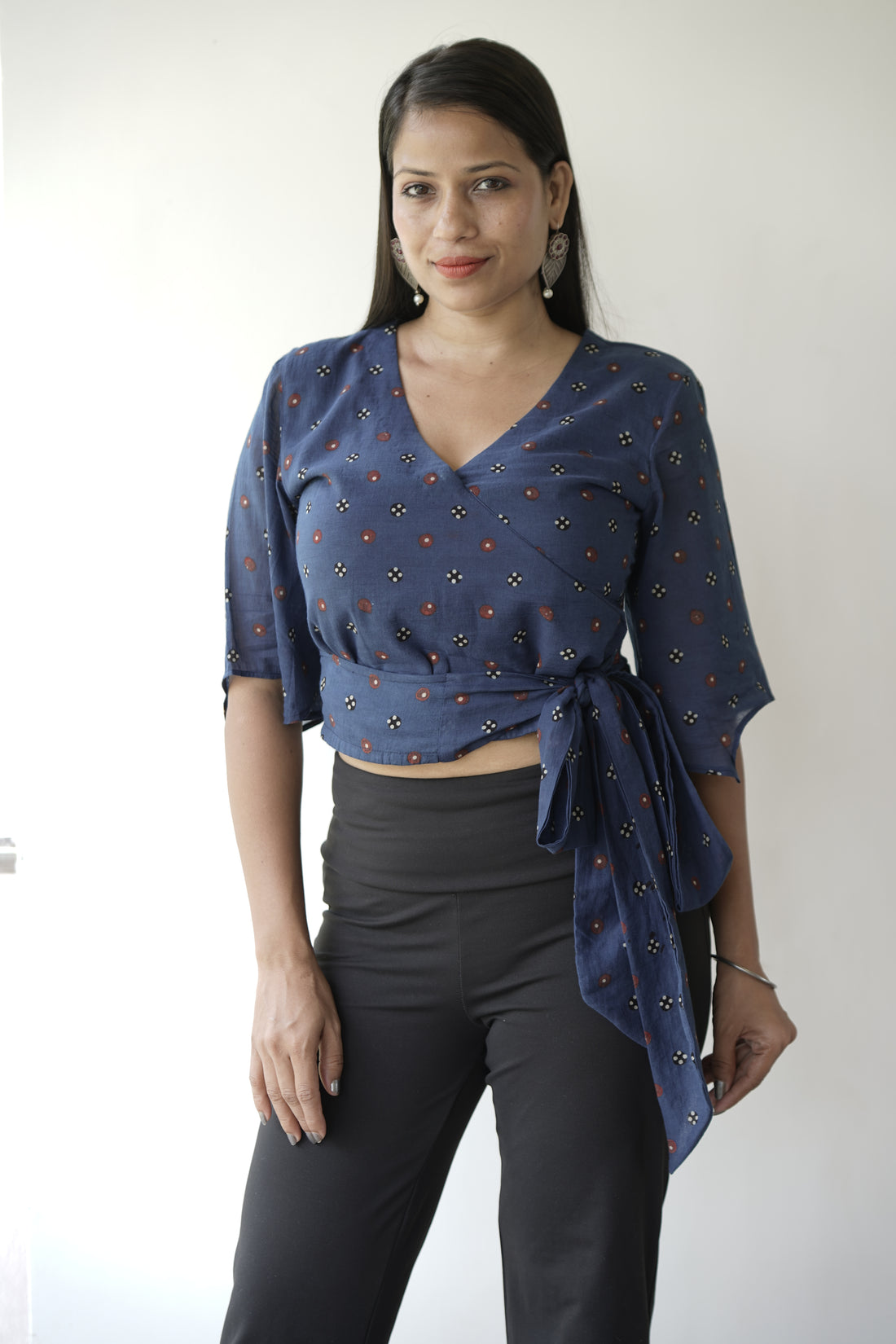 Handblock Printed Mul Cotton Wrap Crop Top