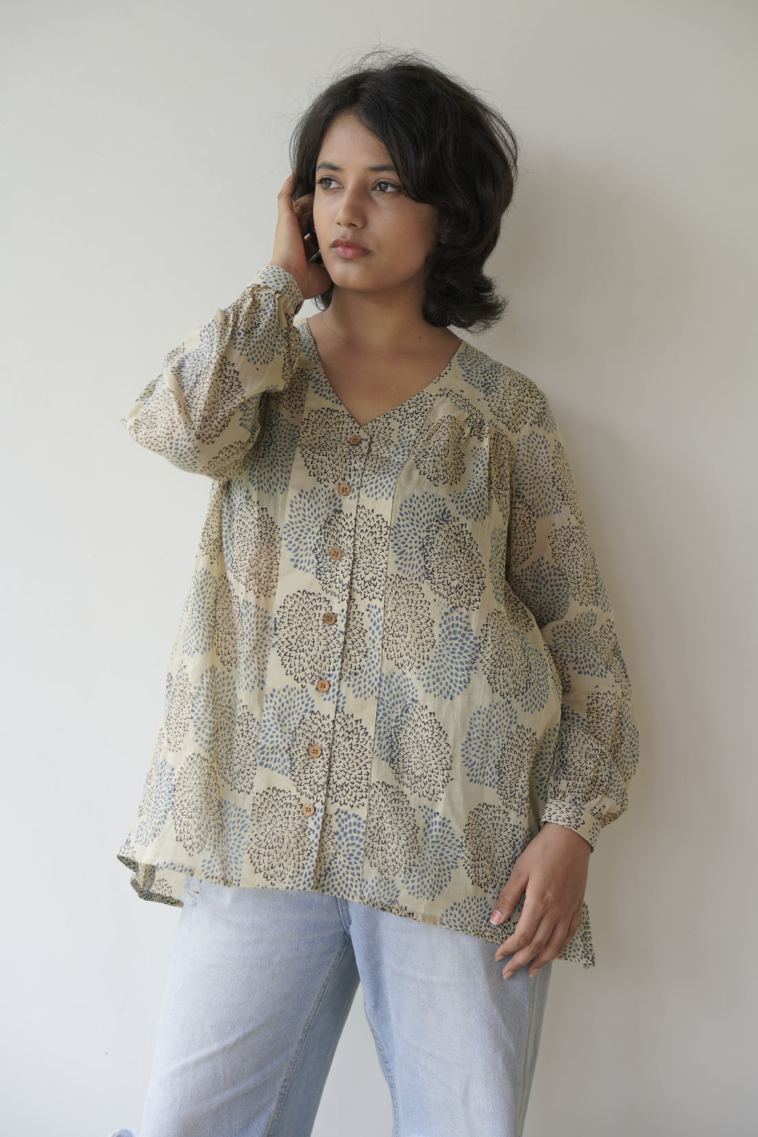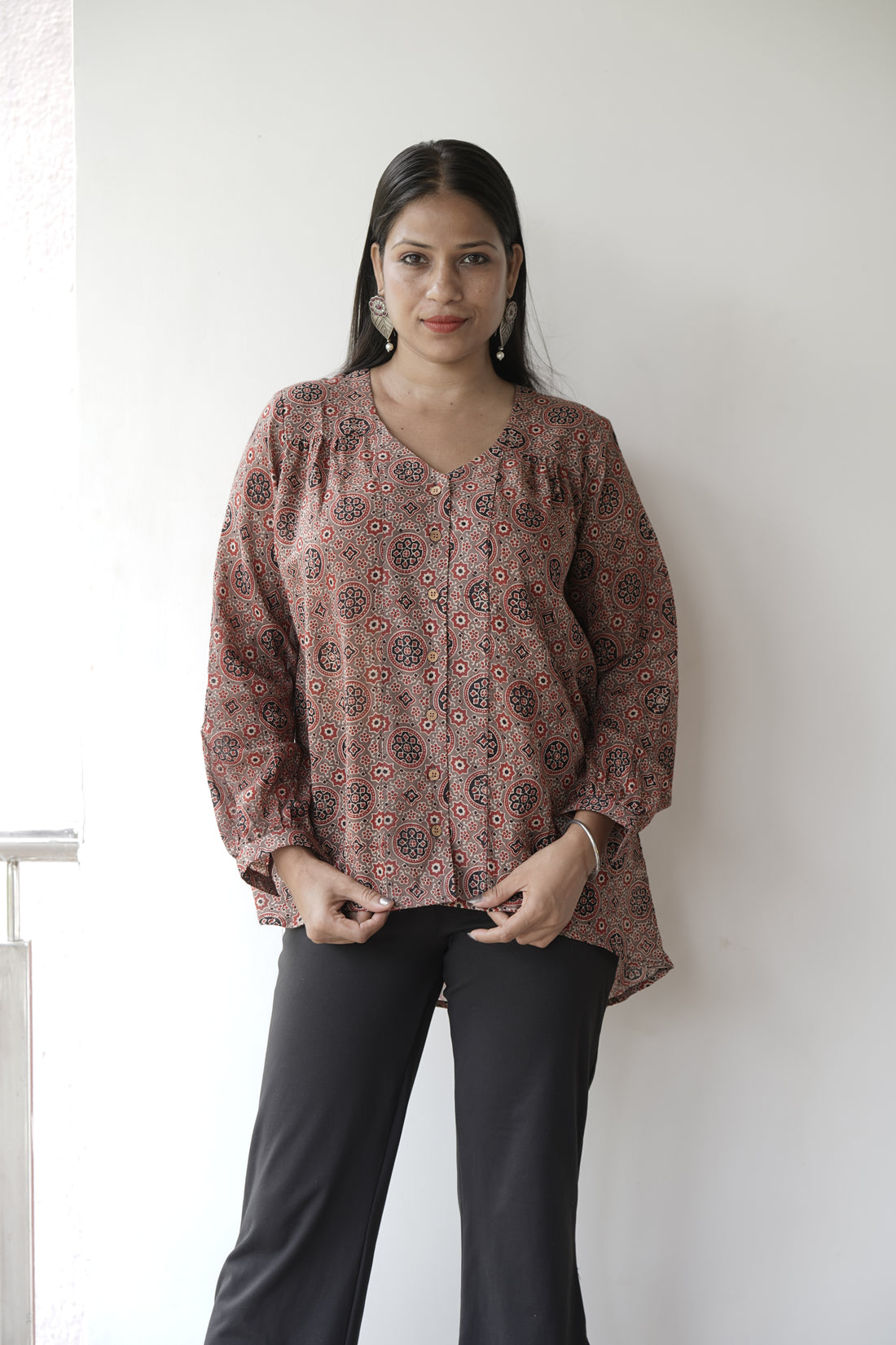 Mulmul shirt Short top. This brown shirt from our Ajrakh collection will be a great...
