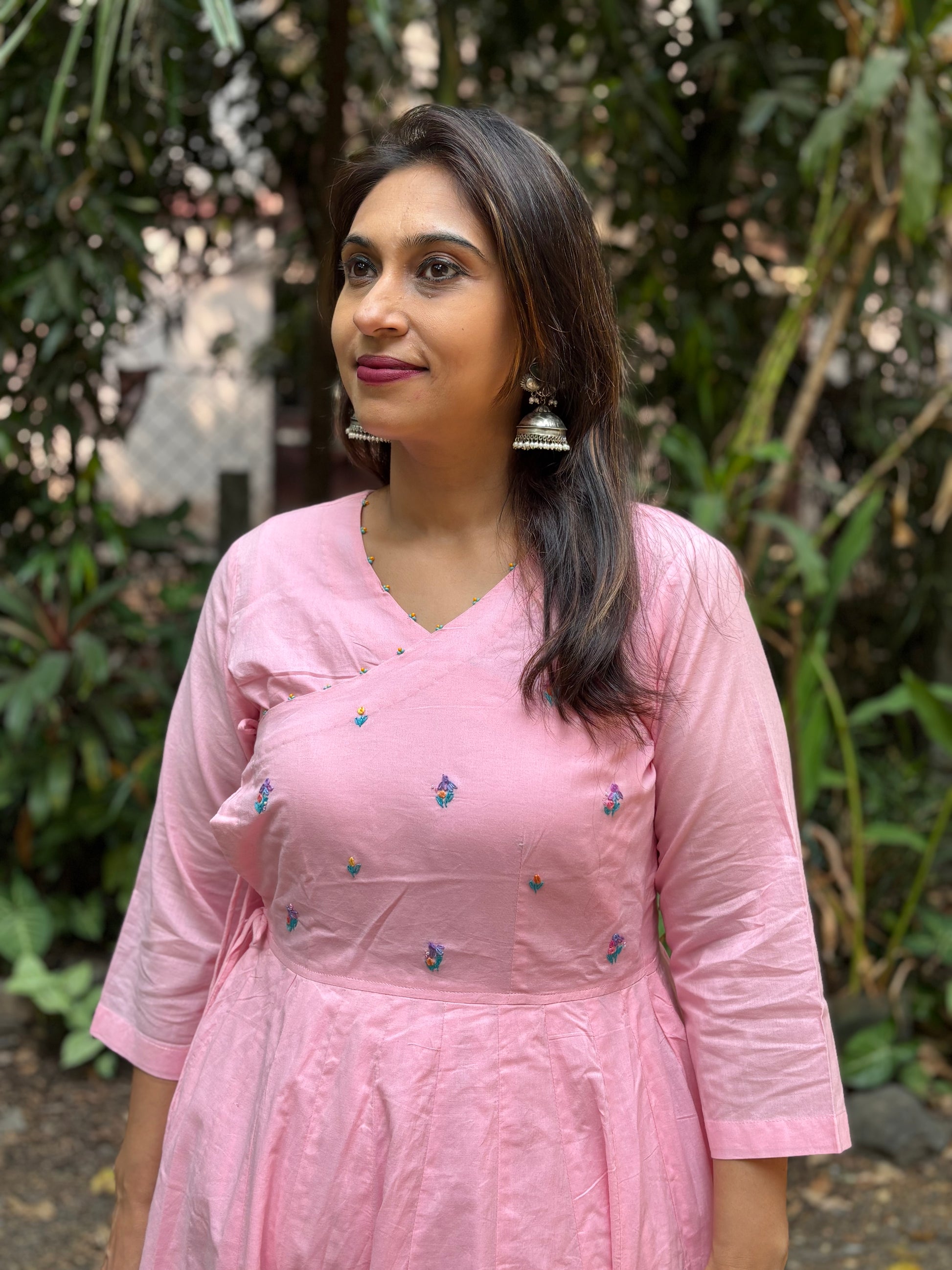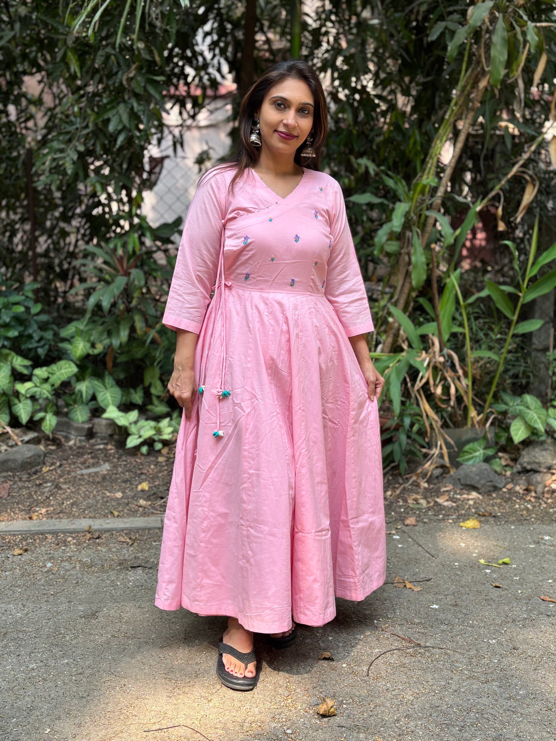Blush Pink Hand-Embroidered Jaipur Cotton Angarkha Dress